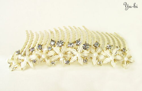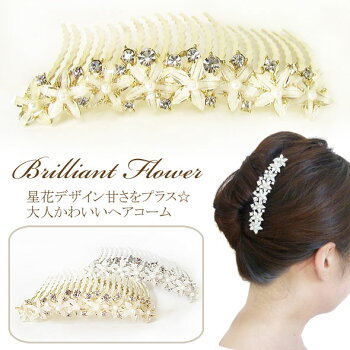【メール便140円】ヘアコーム/夜会巻き コームきらきら星花いっぱいパール&ラインストーンヘアコームcb54☆クリアゴールド パーティ 髪飾り フォーマル 和装 入学式 卒業式 入園式 卒園式 結婚式 お呼ばれ 夜会巻きコーム コーム【あす楽対応】