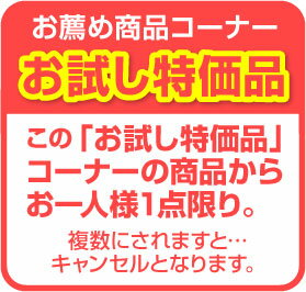 ■問い合わせ電話0246-25-2301 ●このコーナー「お試し特価品」の商品の中からお一人様1点限り 複数にされますとキャンセルとなります。